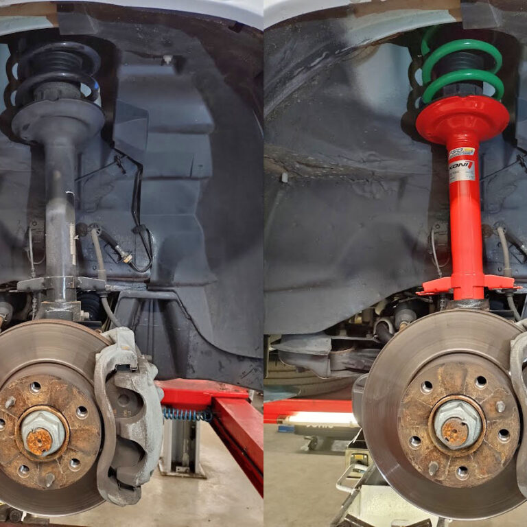 Hierboven ziet u een ‘voor en na’ foto van een veerpoot. Bij deze buscamper hebben we het complete veersysteem aangepast. We hebben bij deze camper KONI FSD schokbrekers gemonteerd om het rijcomfort te verbeteren. Tegelijkertijd hebben we hulpveren van CARSUPPORT op de achteras gemonteerd. Ook hebben we de hoofdveren van de vooras vervangen door verzwaarde veren van Carsuport.