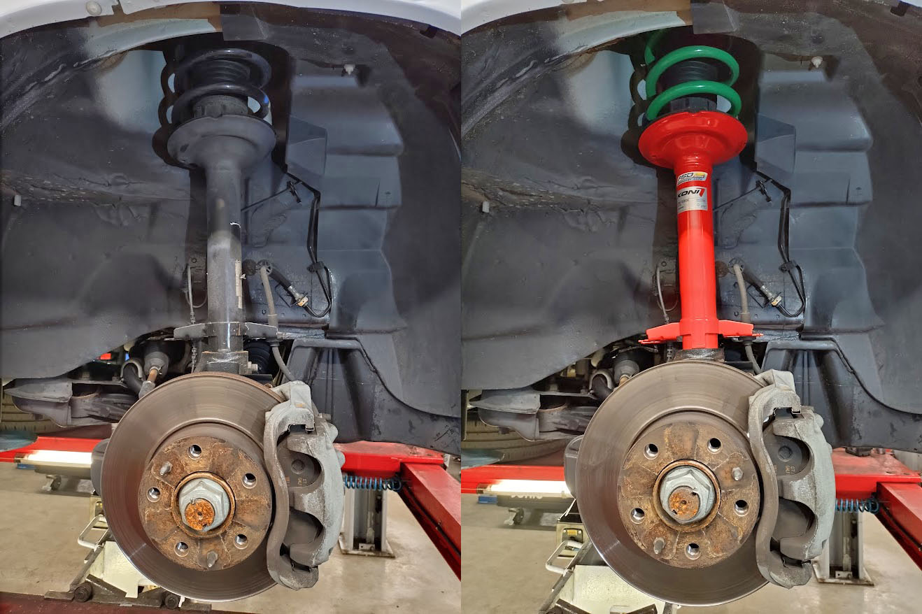 Hierboven ziet u een ‘voor en na’ foto van een veerpoot. Bij deze buscamper hebben we het complete veersysteem aangepast. We hebben bij deze camper KONI FSD schokbrekers gemonteerd om het rijcomfort te verbeteren. Tegelijkertijd hebben we hulpveren van CARSUPPORT op de achteras gemonteerd. Ook hebben we de hoofdveren van de vooras vervangen door verzwaarde…